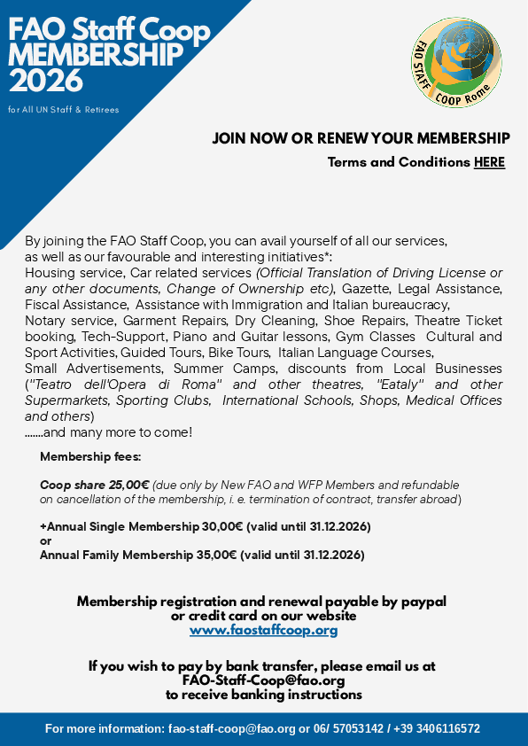 Read on for the many benefits of the FAO Staff Coop membership (for fees and conditions, click here)