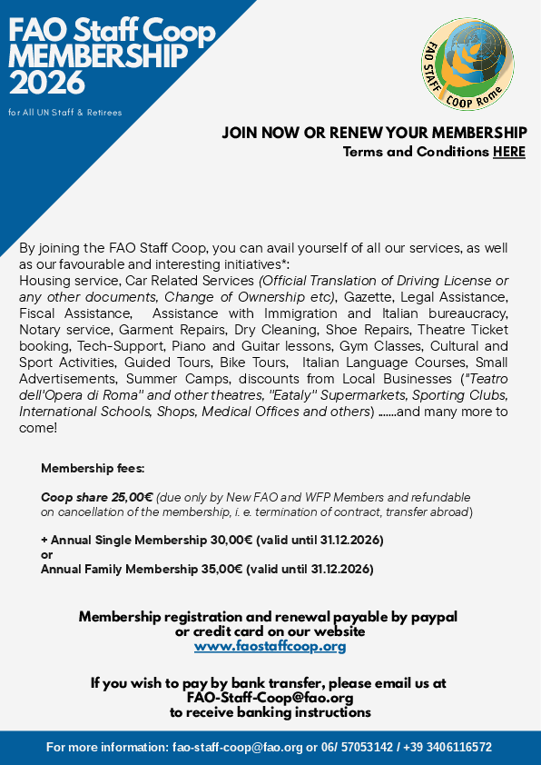 Read on for the many benefits of the FAO Staff Coop membership (for fees and conditions, click here)