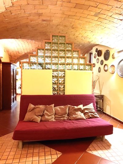 With vaulted ceiling, cotto flooring. Fortified door and camera. Perfectly functioning fountain (made of fragments of marble) at the entrance.