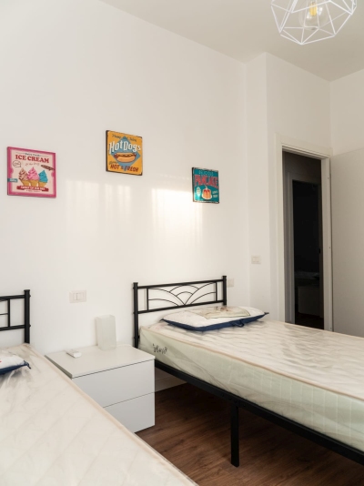 First floor flat in the Quarto Miglio area, between the Appia Antica park and the Parco degli Acquedotti. Consisting of living room, kitchen, bathroom, double bedroom and small bedroom, fully furnished with furniture and appliances and recently renovated. There is a balcony accessible from the living room and a small balcony accessible from the kitchen.