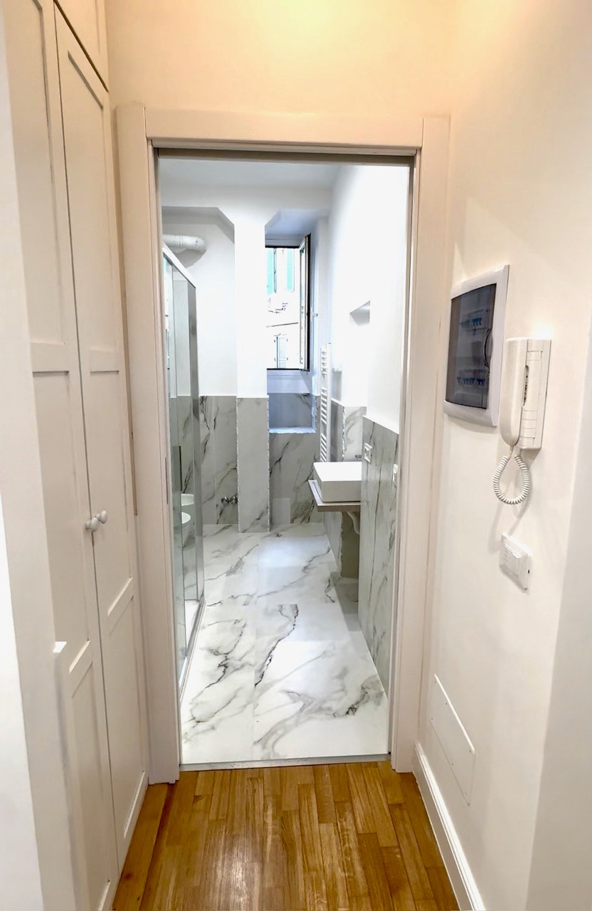 Inside, every room has been carefully designed and the apartment consists of a kitchen overlooking the characteristic and quiet internal courtyard typical of the district, a comfortable living room, a quiet double bedroom, a bathroom with a window, and an entrance hall with a mezzanine ceiling used as a storage room and a large wardrobe designed to accommodate a laundry area.