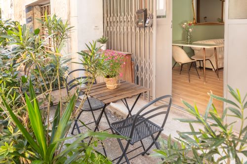 During the summer you can also put a small table outside in the street between the plants and enjoy an aperitivo like Romans do.