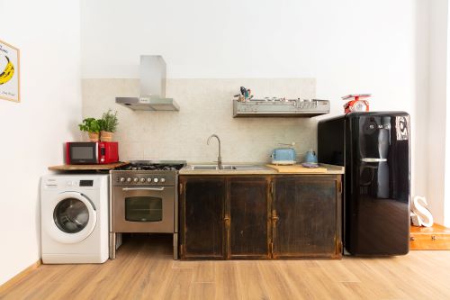 Air conditioning cold and warm, washing machine, microwave, water boiler, toaster, oven, gas kitchen.