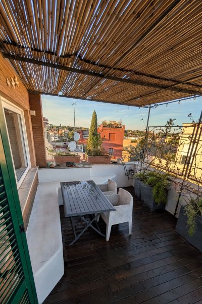 * West Terrace (80 sq.m.): A massive space offering a spectacular, wide-ranging view over Rome, encompassing the EUR district, the Basilica di San Paolo, Monteverde Vecchio, and the Janiculum Hill (Gianicolo).