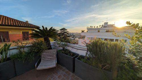 * North Terrace (15 sq.m.): Features elegant parquet flooring and a stunning panorama including the Palatine Hill, the Altare della Patria (Vittoriano), and the distant Castelli Romani hills.
