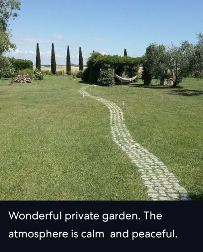 The Cottage is composed of a bright living room with a large fully equipped kitchen. In this environment, where there is also a fireplace, you can enjoy a splendid view of the garden, full of plants, flowers, vines, roses, wisteria and fruit tree. This garden is equipped with pergolas, deck chairs, hammocks, a shaded dining area and a barbeque. There are two bedrooms with double beds. One of these rooms is in a very airy loft. There is one bathroom. It's a place of peace located at a strategic point, in fact nearby you can do many activities in every season. Not too far away there is the possibility of wind surfing and kite surfing, horse riding, hiking, biking, golf, boat trips, spa and wellness centres.