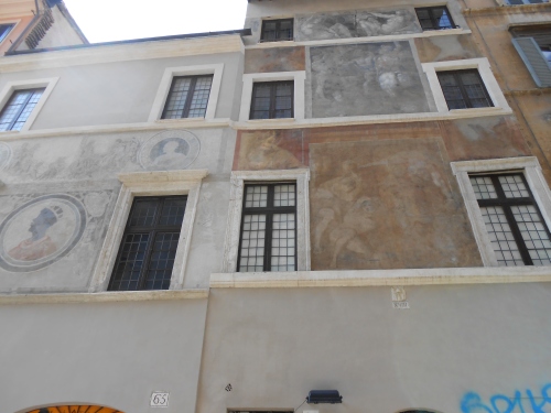 The frescoes on the façade, a masterpiece of exquisite beauty by Polidoro da Caravaggio, who worked with Raphael at the Vatican’s Loggias, depict scenes of Roman history. The second palazzetto features a Moor King, owner of a famous inn, in sgraffiato. Both façades have been thoroughly restaured by the private owners, under the tutelage of the Italian Ministry of Fine Arts. Polidoro da Caravaggio’s drawings and other masterpieces are exposed at the Louvre Museum in Paris, at London’s National Gallery and are part of the British Royal Collection.