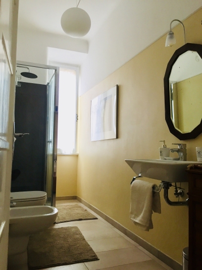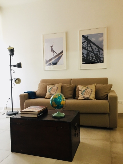 The apartment features an entrance with dedicated workspace and high-speed Wi-Fi, a bright living area with double exposure, dining table, sofa bed and smart TV. Fully equipped kitchen (oven, microwave, Nespresso, complete cookware). Bathroom with shower and washing machine. Spacious bedroom with double bed, premium mattress and linens, and ample storage.