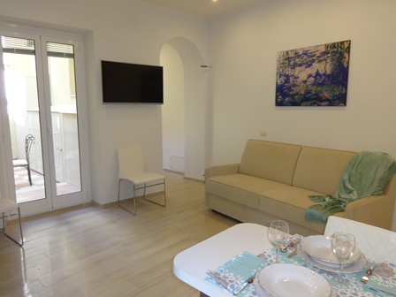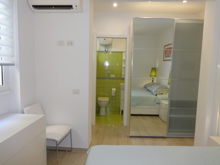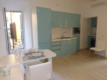 Furnished 65 sqm apartment in Via dei Serpenti, bright, with fortified door, double glazed windows, auto heating, wardrobe, 2 TVs. Composed of: living room with sofa-bed and corner kitchen (with stovetop, fridge with freezer, oven, microwave, dishwasher, coffee maker, toaster, mixer, pots and pans), bedroom with kingsize bed, with ensuite bathroom, wifi int. access, private small courtyard of 20sqm. Washing machine with a storage with vacuum cleaner, iron-board, rack. With air conditioning. Linens provided 20 mins walking distance to FAO, all amenities. No pets, no children.
