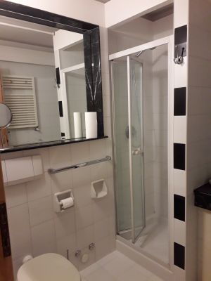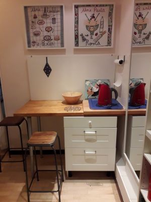 Usable surface di 50 sqm divided into a multifunctional space : entrance, study, living/dining room furnished with double sofa bed, bedroom, bathroom with shower, hallway with wardrobe, closet. A special space equipped as a mini kitchen.