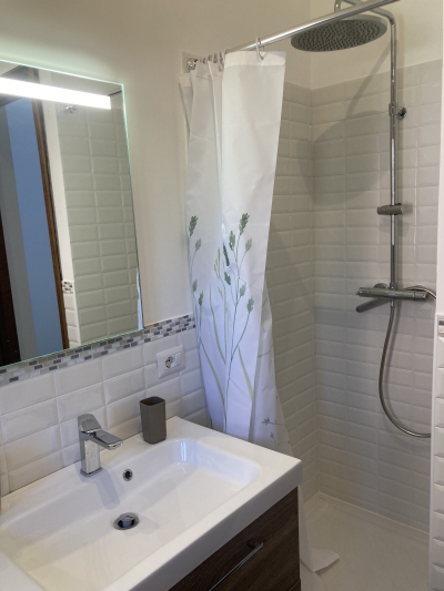 On the 1st floor: living room with open kitchen, bright veranda on property garden, 1 bathroom;