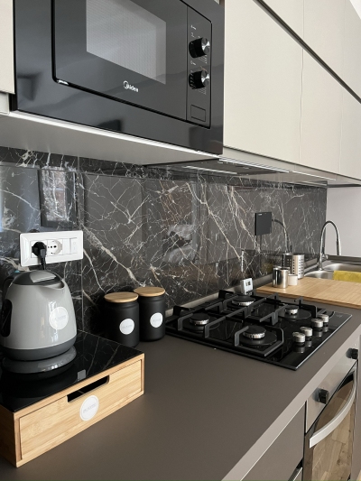• Fully equipped kitchen (Dishwasher, Oven, Microwave, Coffee machine, toaster)