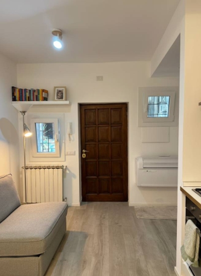 This 45 sqm apartment is located in a quiet two-story building in Trastevere, one of Rome’s most authentic neighborhoods.