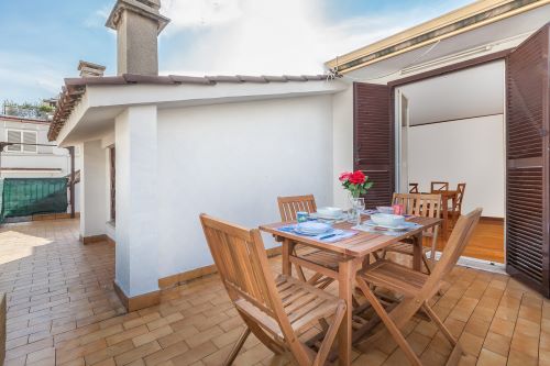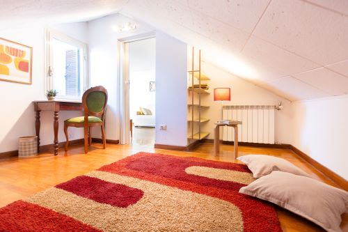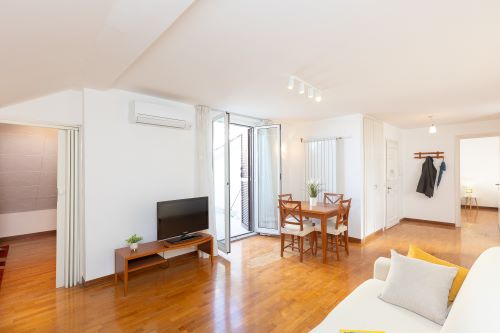 The apartment, approximately 80 square meters in size, is located on a quiet and peaceful street in the Monteverde neighborhood, on the third and top floor. The apartment is very bright, tastefully furnished, and newly renovated. It consists of a living room, a fully equipped kitchen, a laundry room (with washing machine, drying rack, and ironing board), a bathroom, a master bedroom, a loft-style study/second bedroom, and two spacious terraces with a table and chairs. Air conditioning is available in the bedroom and living room. Other features include an intercom system and double-glazed windows and doors.
