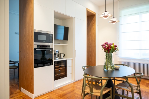 It is an elegant apartment with a style of early 20th-century Art Nouveau buildings.