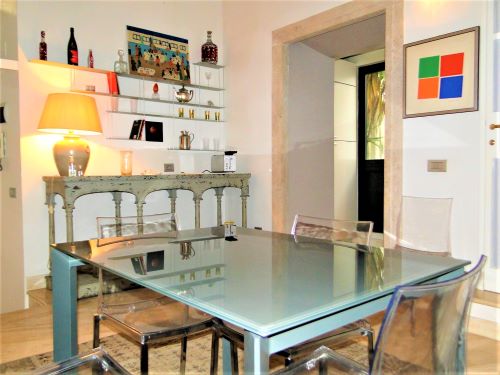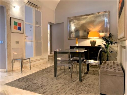 In the heart of the historic center, in a charming 13th-century building, a first-floor noble apartment of about 95 sqm, fully furnished, consisting of: entrance hall, dining room, small kitchen, living room with optional sofa bed, small balcony, and bathroom. On the mezzanine floor: master bedroom with en-suite bathroom and built-in wardrobes, plus a small single bedroom. The apartment also includes a utility room with washing machine and another small space with a wardrobe.