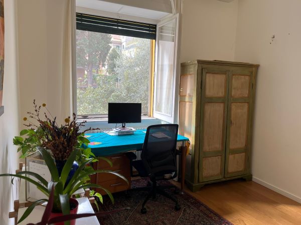 96 sq. mt. very panoramic and sunny apartment for rent in Viale Glorioso, Trastevere. This furnished apartment overlooks a charming and very quiet street on the slopes of Gianicolo hill, just 2 minutes walk from Villa Sciarra Park and San Cosimato square with shops, bars and restaurants.