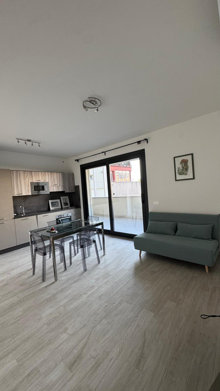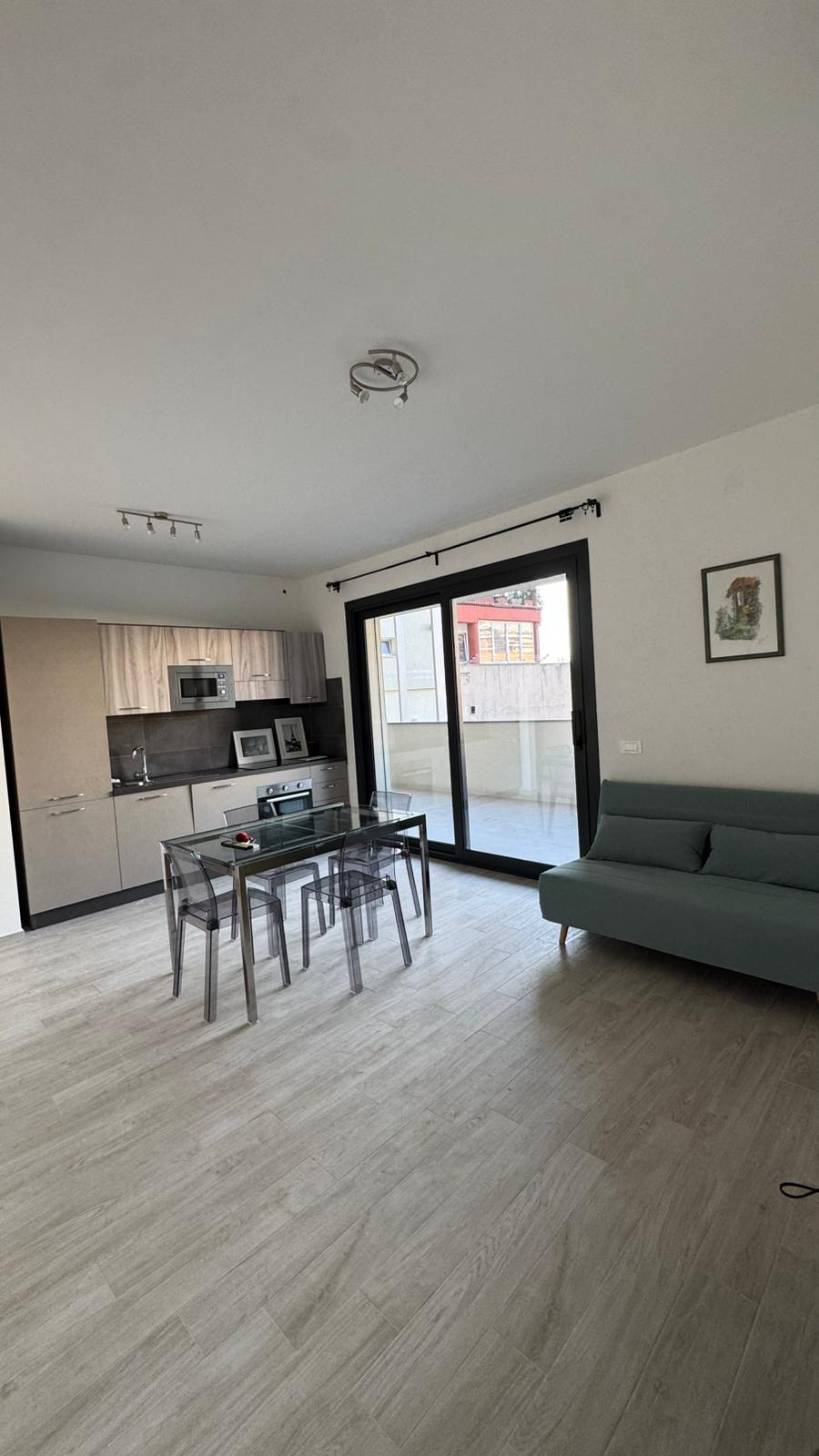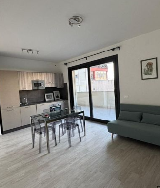 Fully equipped and furnished. It consists of a living room with a kitchenette, bathroom, bedroom and a balcony of 22 square meters. It has air conditioning, a new kitchen equipped with every accessory (dishwasher, microwave, induction hob, oven), a living room with new furniture and 37” television, and a double bedroom with new furnitures completely equipped. It is rented with a temporary contract to referenced people.