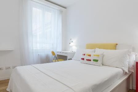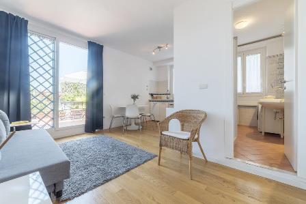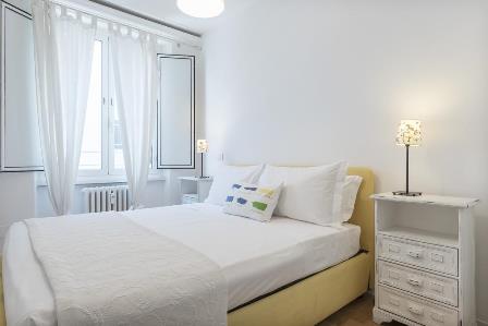 Bright and quiet 65sqm apartment, with lovely terrace overlooking San Giovanni basilica. On the 7th and last floor, with elevator. Open living room with kitchen, two bedrooms, bathroom with shower. Parquet, air conditioning, central heating + autonomous, fully furnished. Distance from FAO 1,9km. Close to metro (7minutes walking to both metro A and metro C), bus, shops, restaurants.