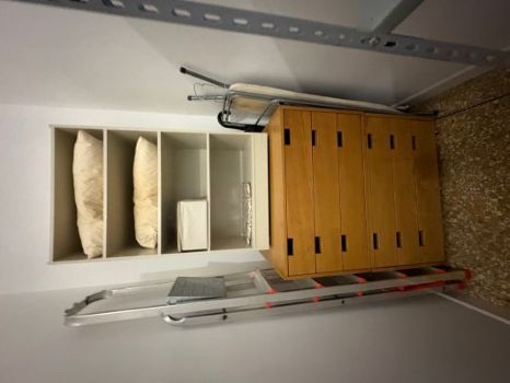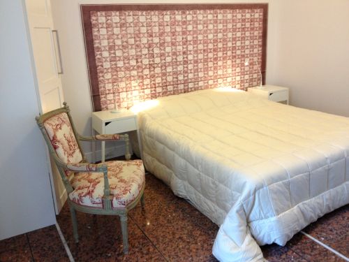 4th floor with elevator, very luminous, elegant building, doorman, quiet, large entrance hall, 2 large bedrooms, bathroom with 2 sinks and bathtub with shower, living room with dining area, well-equipped kitchen, 1 large balcony, 1 small balcony, hot/cold air conditioning, washing machine, refrigerator, and spacious storage room with large chest of drawers.