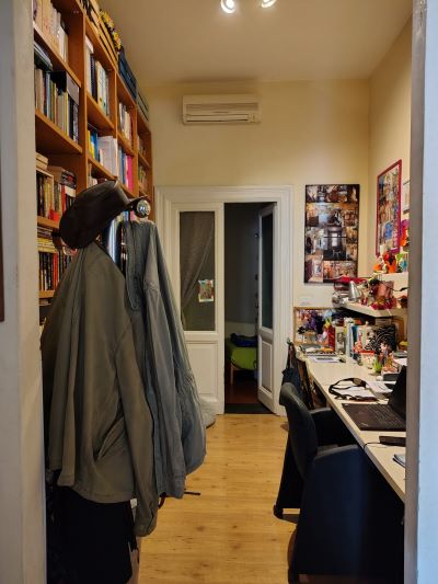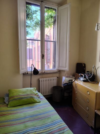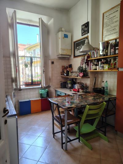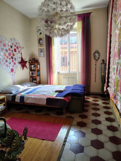A 110 sqm sunny apartment located in via Angelo Poliziano, in a typical neighborhood in central Rome, Rione Monti. The apartment is furnished and located at fifth floor in an elegant building, pretty close to Coliseum and Colle Oppio park, Saint John Hospital and Stazione Termini. In the building there is an elevator
