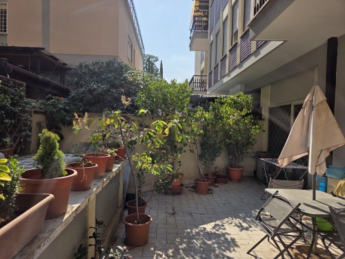 n. 63, in the historic Garbatella district, located on the ground floor of a ten-storey building from the early 1960s with concierge and elevator. The property measures 95 sqm commercial (83 sqm net habitable space) plus an additional 25 sqm of paved private outdoor area for exclusive use.