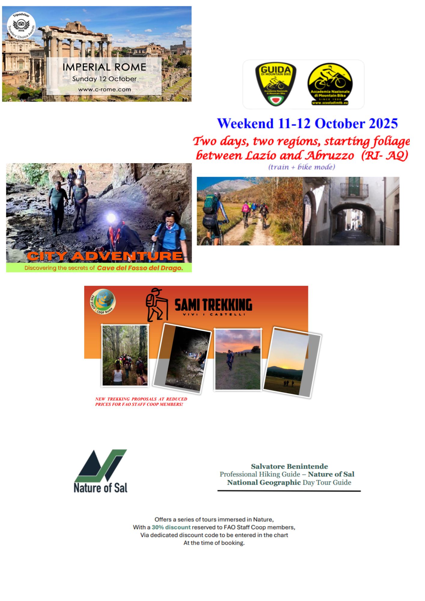 - Last but not least, THE COMPLETE OCTOBER PROGRAM OF TRIPS AND HIKES organized by Salvatore Benintende and his “Nature of Sal,” bookable directly from his website, for which our members can benefit from the usual 30% discount. - READ MORE