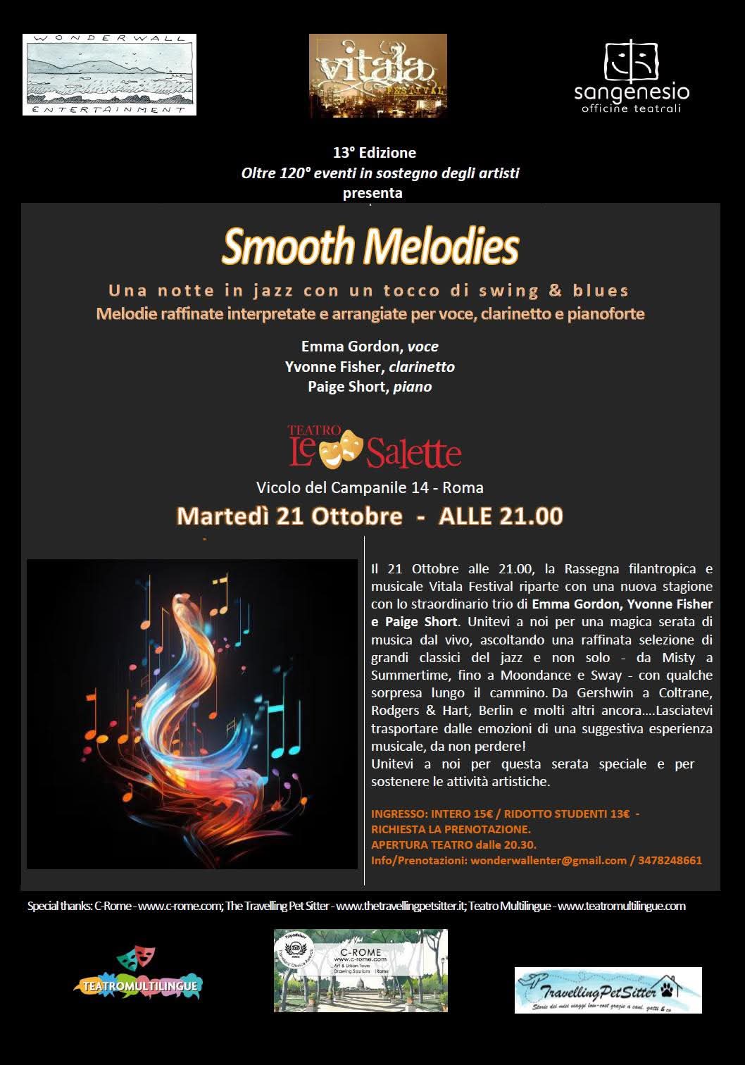 Benefit Concert. Smooth Melodies: A night of Jazz, Swing & Blues. Tuesday 21 Octobre @ Teatro Le Salette, Rome. (Details on the flier)