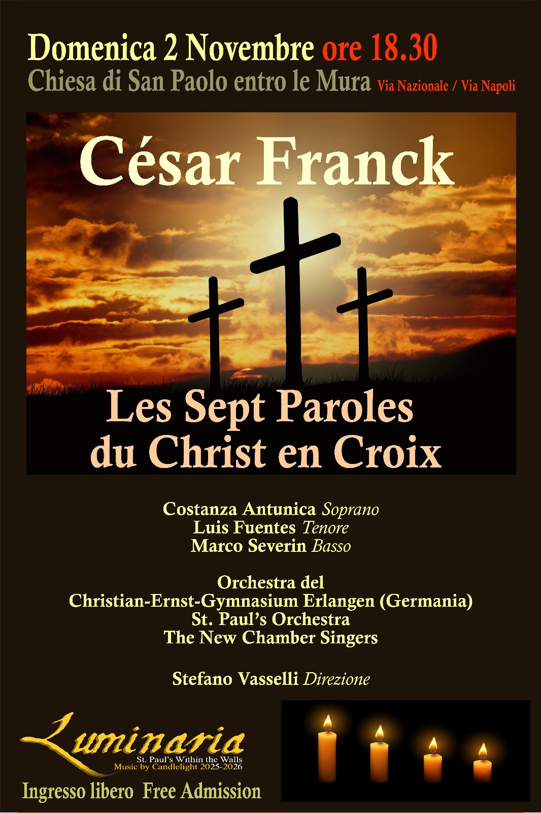 Sunday 2 November @6:30pm. Concert of the New Chamber Singers & the Orchestra of the Christian-Ernst-Gyymnasium, Erlangen, Germany. St Pauls Within the Walls, Via Nazionale, Rome.