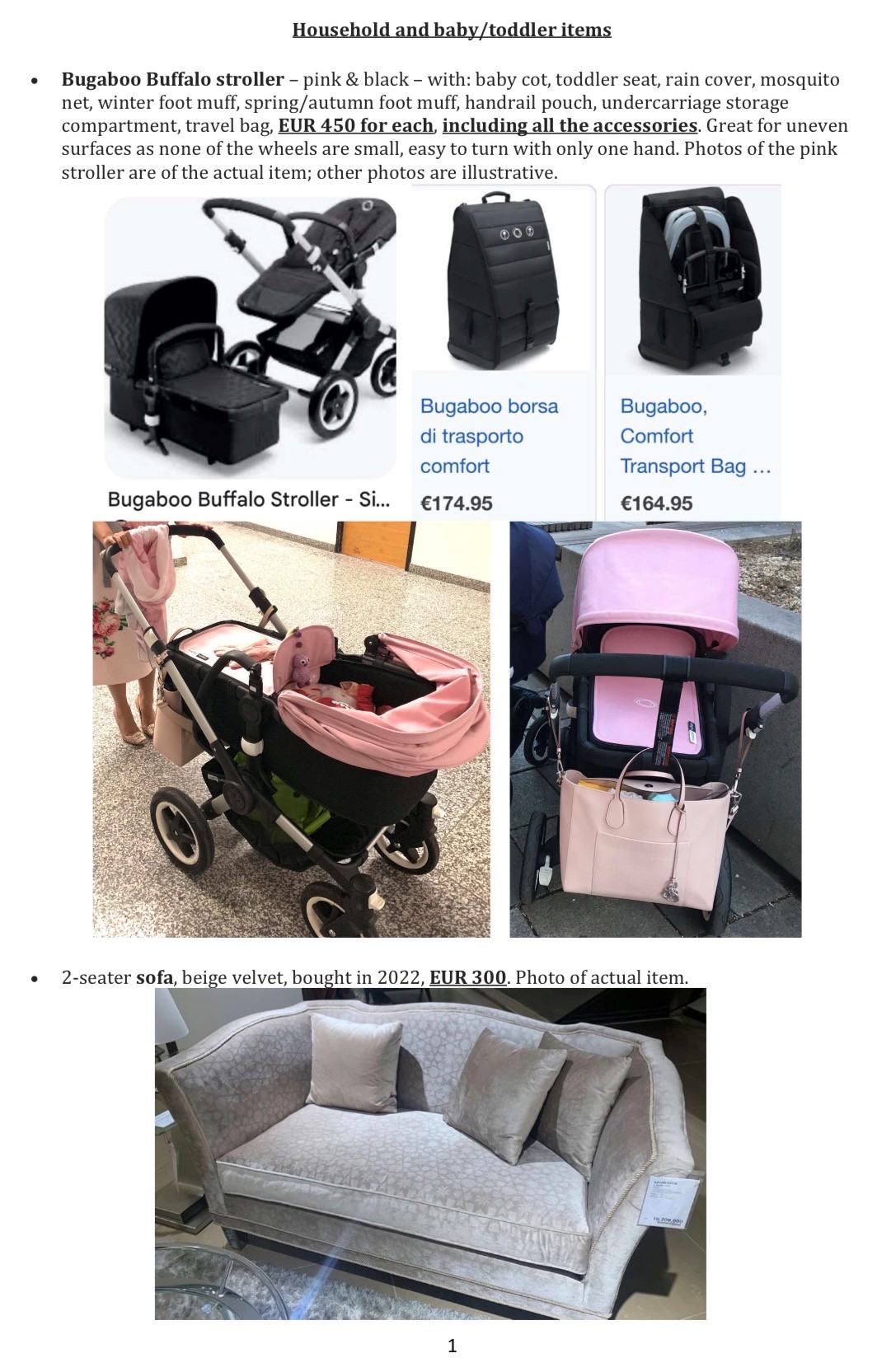 • Bugaboo Buffalo stroller, EUR 450, including all the accessories.