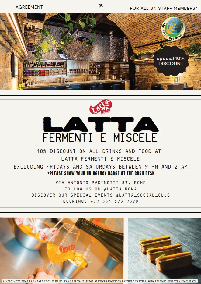 All this comes with a 10% discount for active members of the FAO Staff Coop.