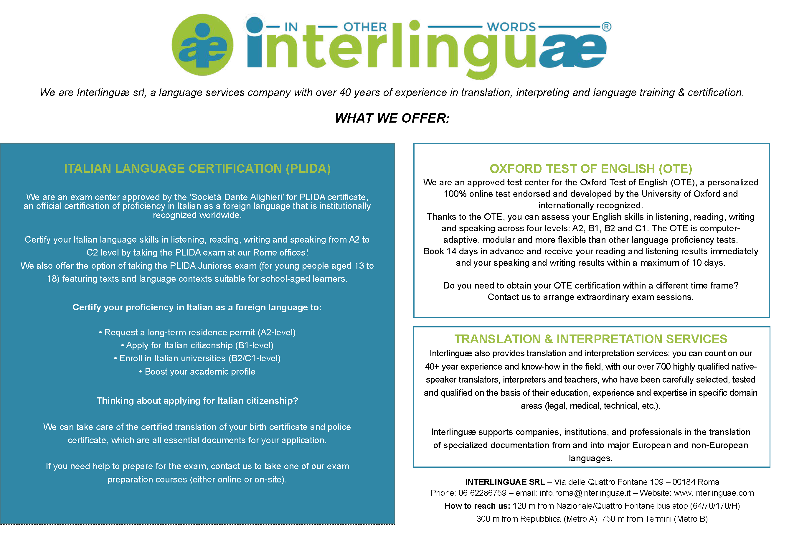 Language service company with 40+ years of experience in translation, interpreting and language training & certification.